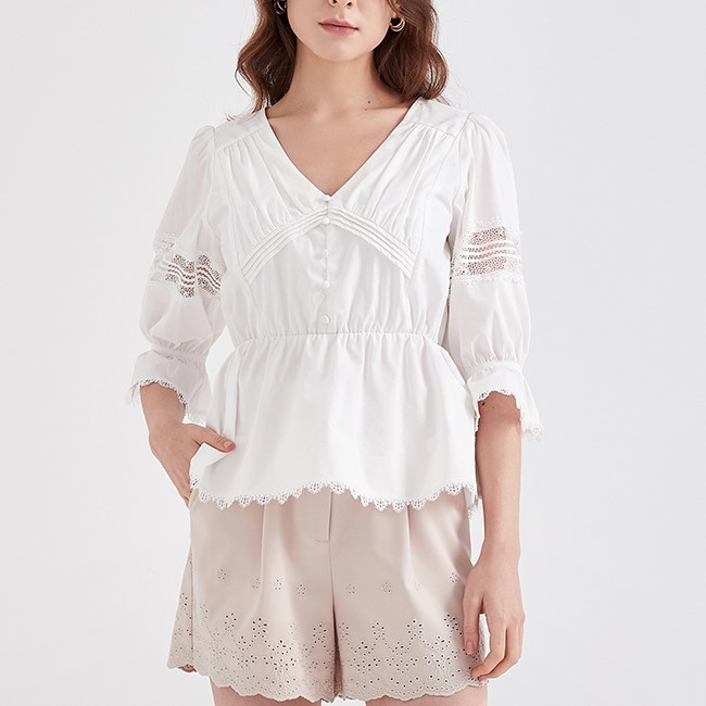 2 Pcs V Neck Short Sleeve Top with Classic Drawstring Design