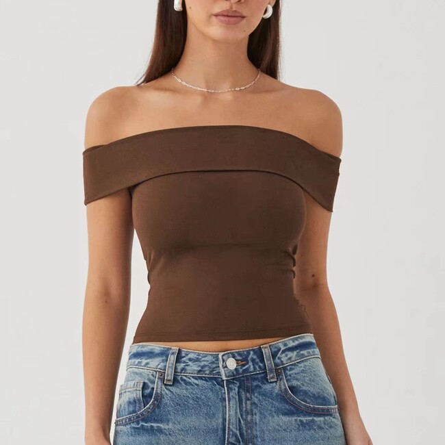 6 Pcs Beaded Spliced Mesh Black Strapless Top