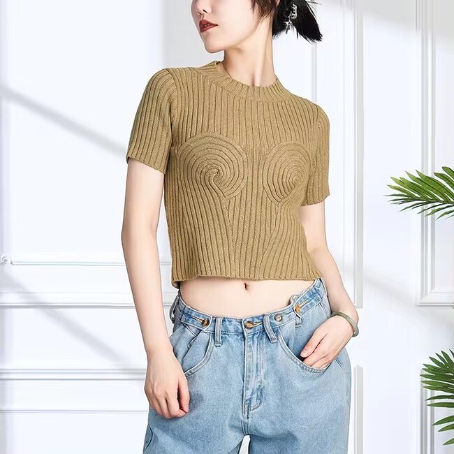 2 Pcs Summer New Womens Bubble Short Sleeved Casual T shirt