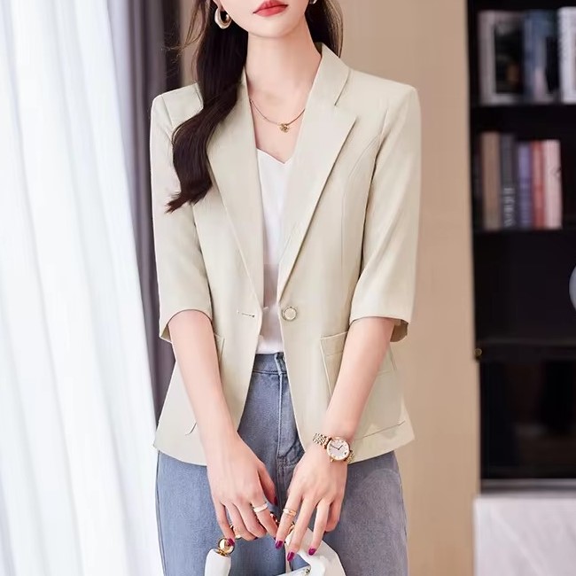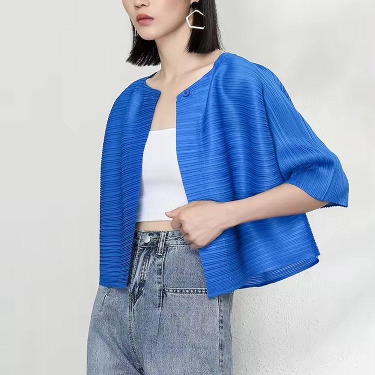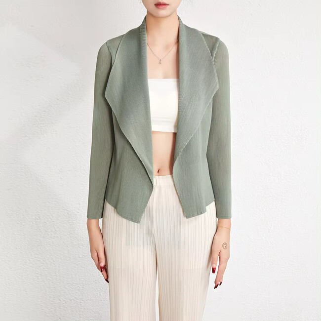 Womens Summer Fashion Solid Colour Pleated Slim Jacket